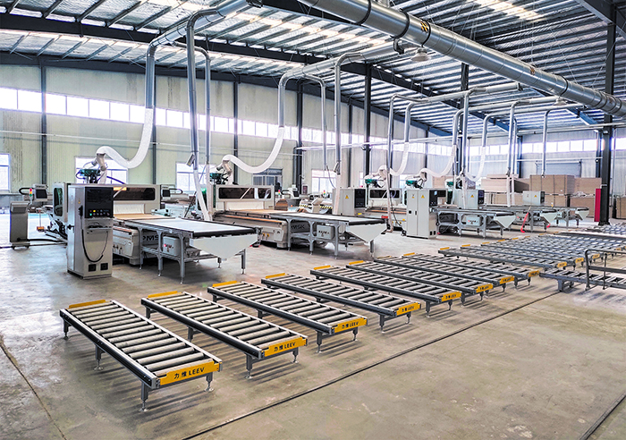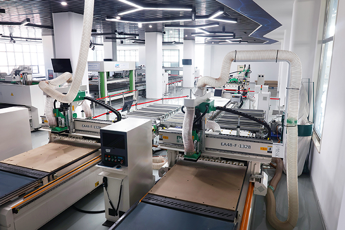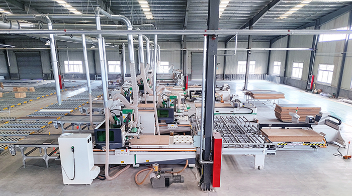 3,同一訂單可以快速推進,中控系統(tǒng)自動分配板材進入可加工工位,有效推進同批次同訂單同花色板材依次加工。