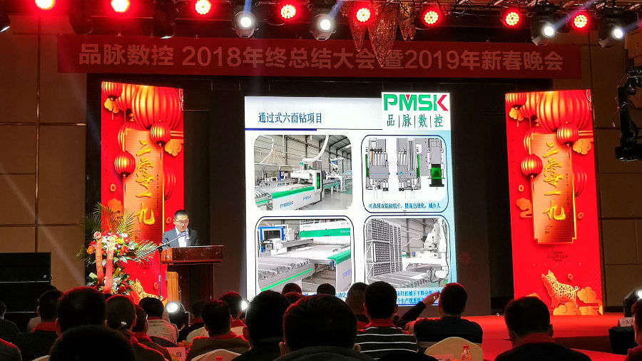 研發(fā)部李亮總工做工作匯報,2018年品脈數(shù)控有實(shí)木五軸加工中心、實(shí)木開料機(jī)、通過式六面鉆等新產(chǎn)品面世,并作出2019年的研發(fā)規(guī)劃。