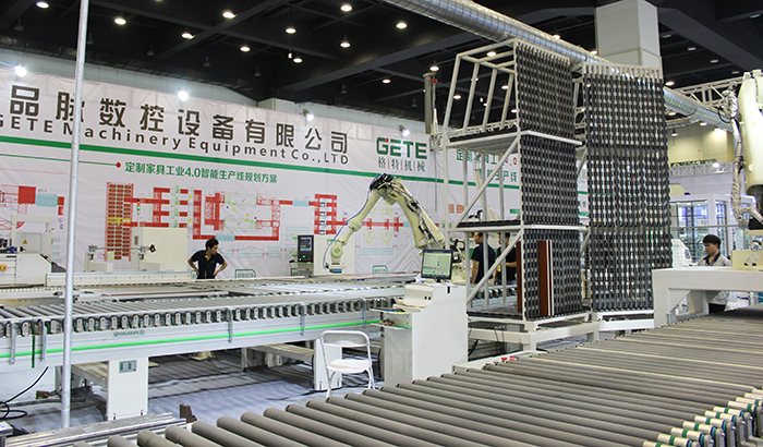 品脈數(shù)控定制家具工業(yè)4.0主要是以無人化工廠為主,打造工業(yè)4.0的生產(chǎn)線,把開料、封邊、鉆孔、分揀、包裝等流程一體化,從而實(shí)現(xiàn)無人式的工廠生產(chǎn)模式。整套定制家具工業(yè)4.0硬件部分涵蓋開料設(shè)備、多軸搬運(yùn)機(jī)器人、封邊回轉(zhuǎn)線系統(tǒng)、動(dòng)力傳輸線、龍門抓料機(jī)、六面鉆打孔設(shè)備、自動(dòng)分揀系統(tǒng)等通過總控系統(tǒng)與智能軟件控制實(shí)現(xiàn)自動(dòng)化生產(chǎn)。