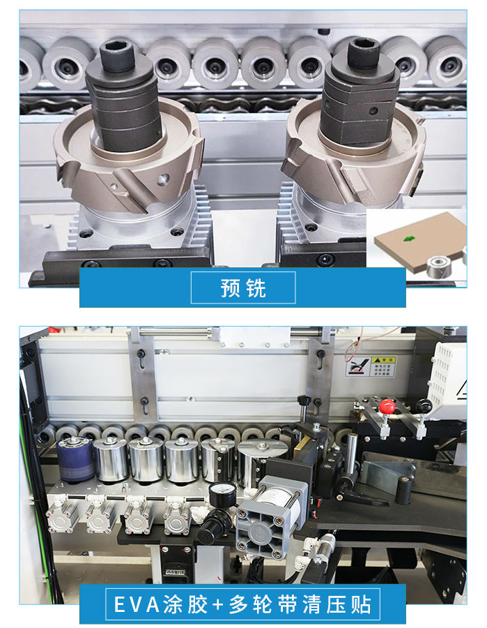 分離劑→預銑→EVA涂膠1→氣動多輪帶清壓貼→上膠鍋涂膠→多輪帶清壓貼→前后齊頭→粗修→精修→雙頭跟蹤→刮邊→打側孔→清洗劑→拋光