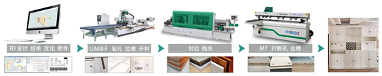 自動貼標(biāo)數(shù)控加工中心,由全自動上下料木工數(shù)控加工中心以及數(shù)控自動貼標(biāo)機(jī)兩臺設(shè)備組成;通常用于板式家具尤其全屋定制家具自動貼標(biāo)自動切割加工;后端可搭配數(shù)控側(cè)孔機(jī)或者PTP、數(shù)控五面鉆、六面鉆等設(shè)備;其中搭配數(shù)控五/六面鉆,前端自動貼標(biāo)開料加工中心不需翻板加工,適合定制家具高效率規(guī)?;a(chǎn)。